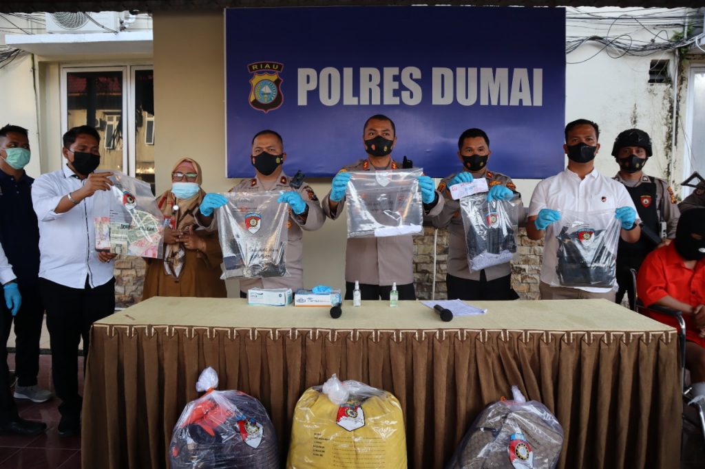 “Dengan dibantu oleh Tim Jatanras Polda Riau dan Dit Intelkam Polda, Tim Opsnal Sat Reskrim Polres Dumai berhasil menangkap pelaku atas nama SL Alias A Alias N (23) di Hotel Sabrina Jalan Nangka Kelurahan Tangkerang Tengah Kecamatan Bukit Raya Kota Pekanbaru. Namun saat dilakukan penangkapan kemudian dilakukan pengembangan, pelaku SL Alias A Alias N (23) melakukan perlawanan kepada petugas sehingga dilakukan tindakan tegas dan terukur terhadap pelaku SL Alias A Alias N (23),” jelas Kapolres Dumai AKBP Mohammad Kholid, S.I.K.