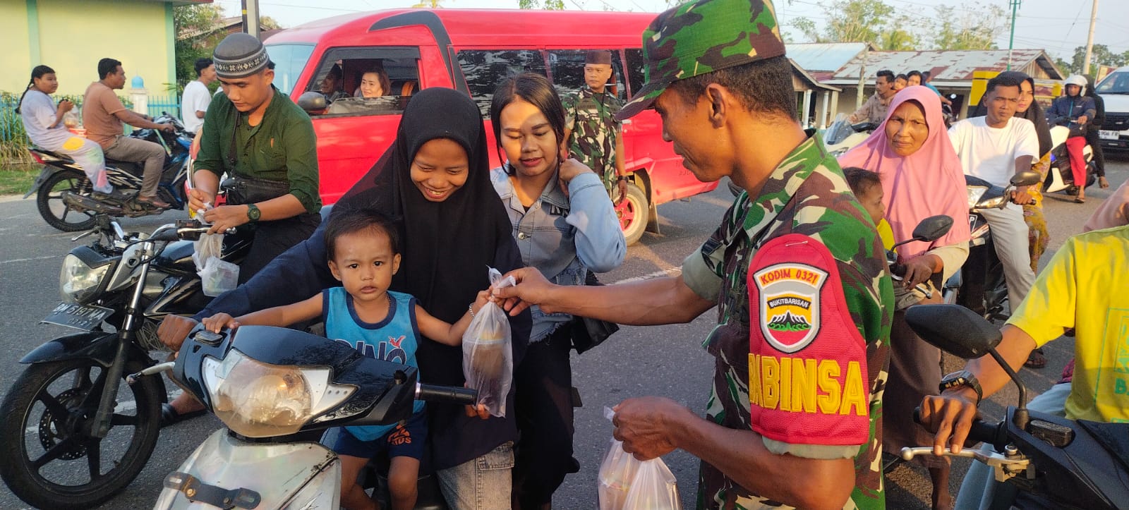 Seperti halnya yang dilakukan Koramil 01/Bangko bersama Persit KCK Cabang LXXVI Kodim 0321/Rohil di bulan yang penuh berkah ini membagikan takjil buka puasa secara gratis kepada para pengguna jalan yang melintas di depan kantor Koramil 01/Bangko, Jumat (22/3/2024).