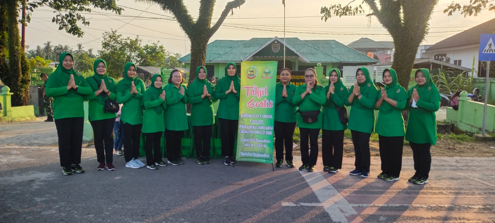 Dandim 0321 Rohil Letkol Kav Nugraha Yudha Prawiranegara SIP melalui ketua Persit KCK Ny. dr Mery Nugraha Yudha Prawiranegara menyebutkan, pembagian ratusan paket takjil gratis kepada masyarakat tersebut sebagai salah satu bentuk perhatian dan saling berbagi pihaknya kepada sesama di bulan suci ramadhan.