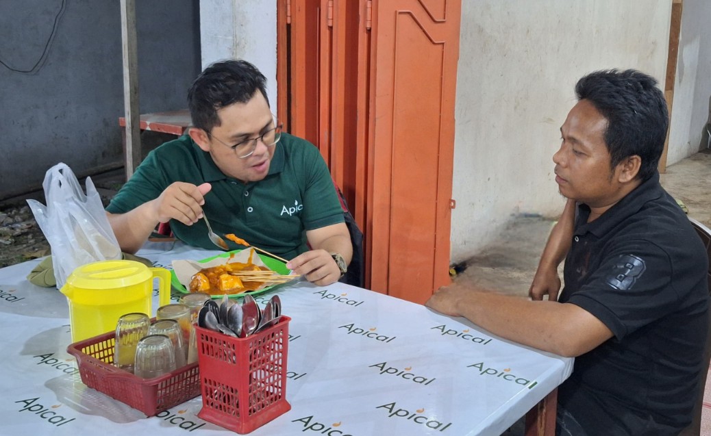 Dumai, 27 Desember––Perwakilan manajemen Apical mengunjungi salah satu mitra UMKM binaan Apical yang berlokasi di Kelurahan Lubuk Gaung, Kecamatan Sungai Sembilan, Kota Dumai, Riau yakni Sate Padang Minang Saiyo untuk bersilaturahmi sekaligus berdiskusi dengan pemilik Sate Padang Minang Saiyo, Ikrar Muliadi.