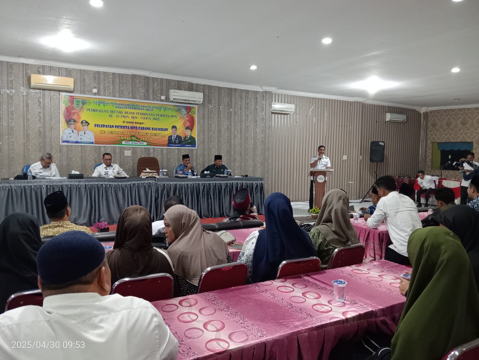 Pembukaan kegiatan pembinaan tersebut ditandai secara simbolis oleh Wakil Bupati Rokan Hilir, H. Jhony Charles, S.E., melalui pelepasan resmi 10 orang peserta cabang Khottil Qur’an (kaligrafi) menuju Lembaga Kaligrafi Al-Qur’an (LEMKA) di Sukabumi, Provinsi Jawa Barat, yang berlangsung di Hotel Armaroza, Bagansiapiapi, Rabu (30/04/2025) Provinsi Riau.